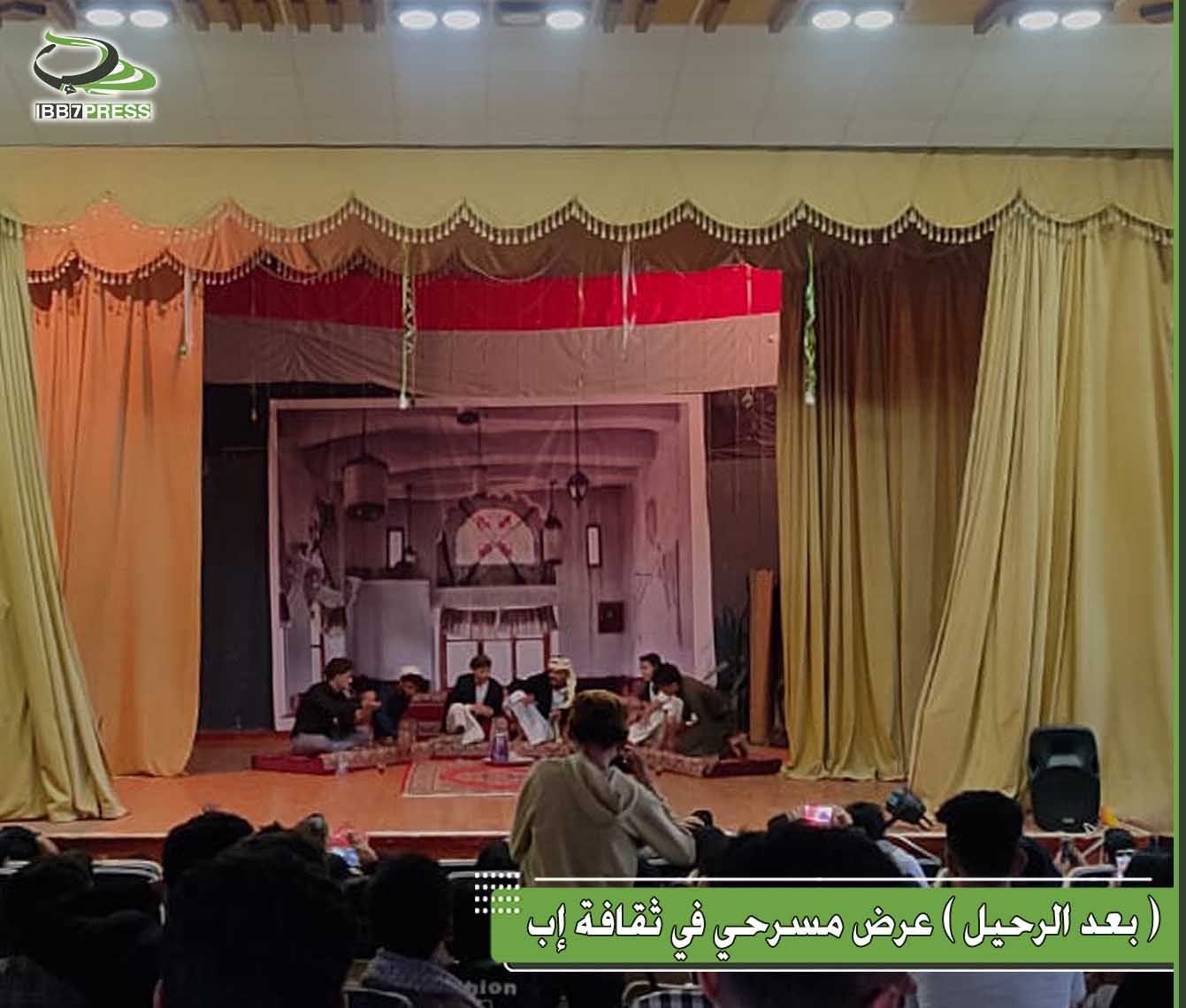 عرضت على خشبة مسرح المركز الثقافي التابع لمكتب الثقافة بمحافظة إب عصر اليوم مسرحية ( بعد الرحيل ).