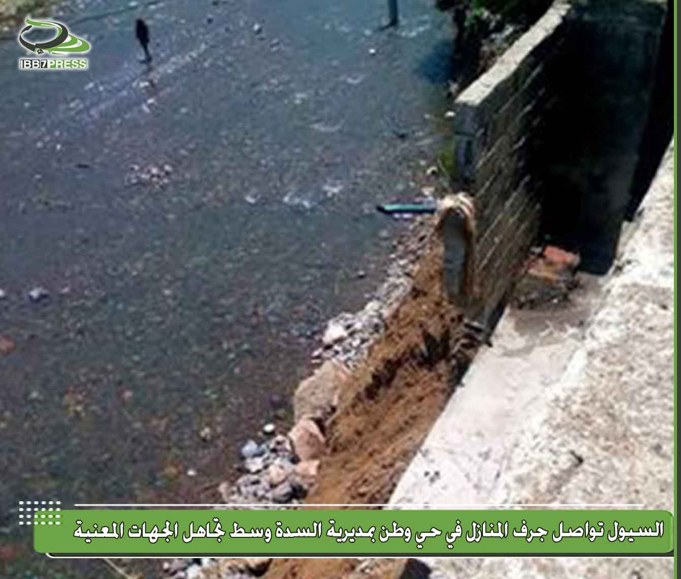 السيول تواصل جرف المنازل في حي وطن بمديرية السدة وسط تجاهل الجهات المعنية