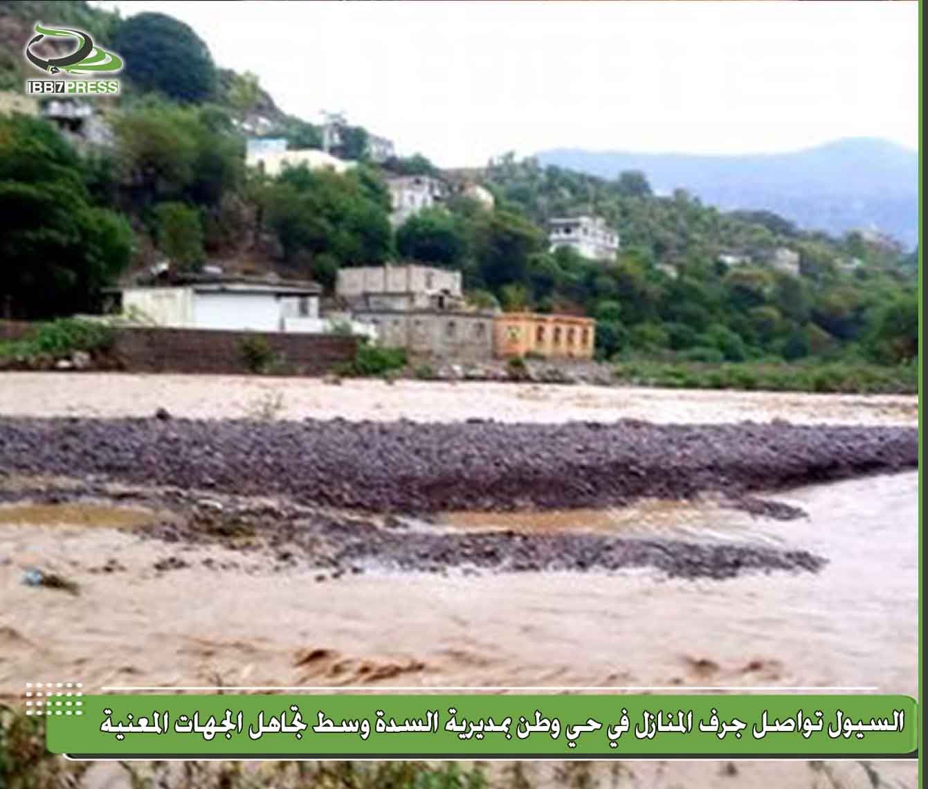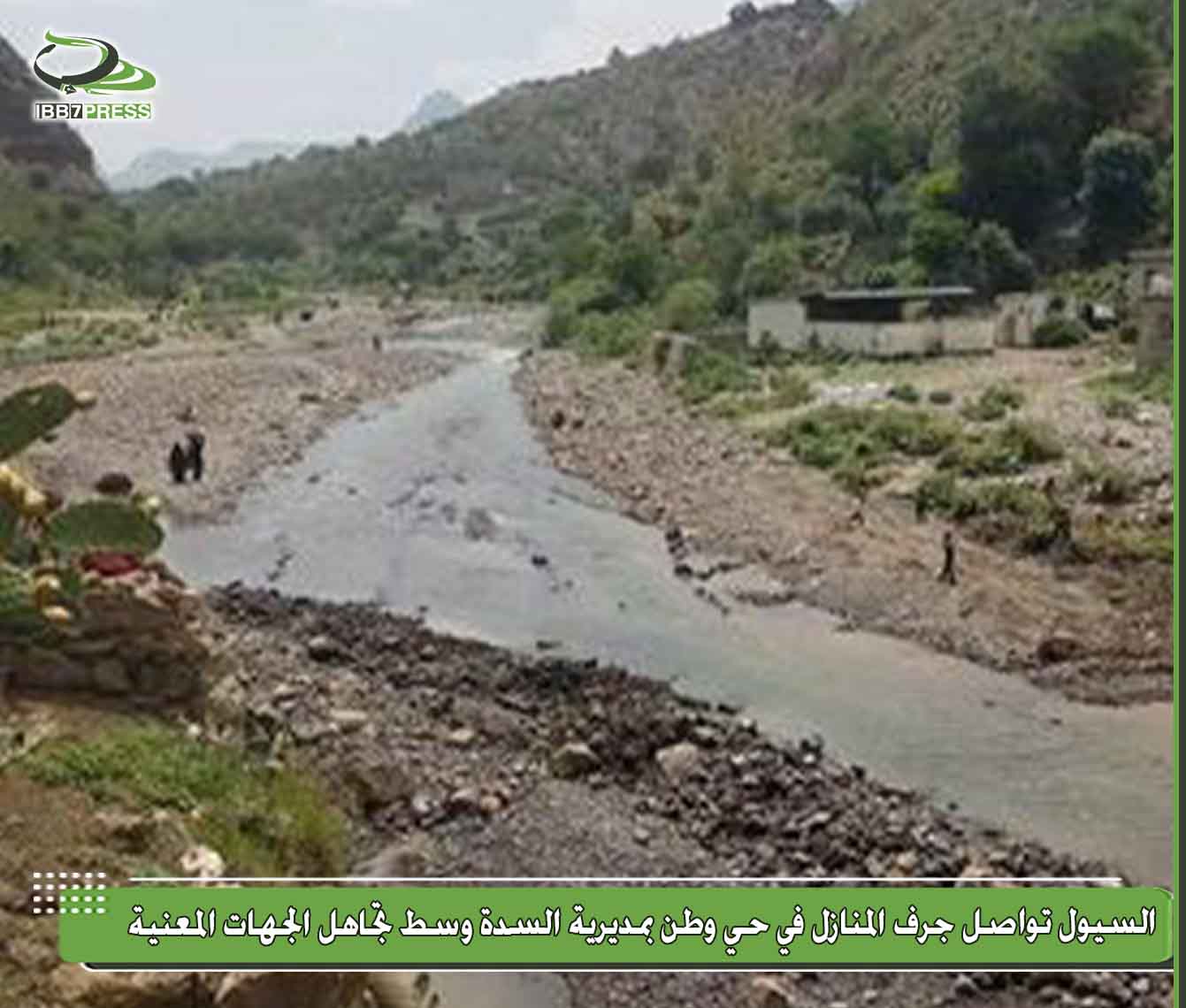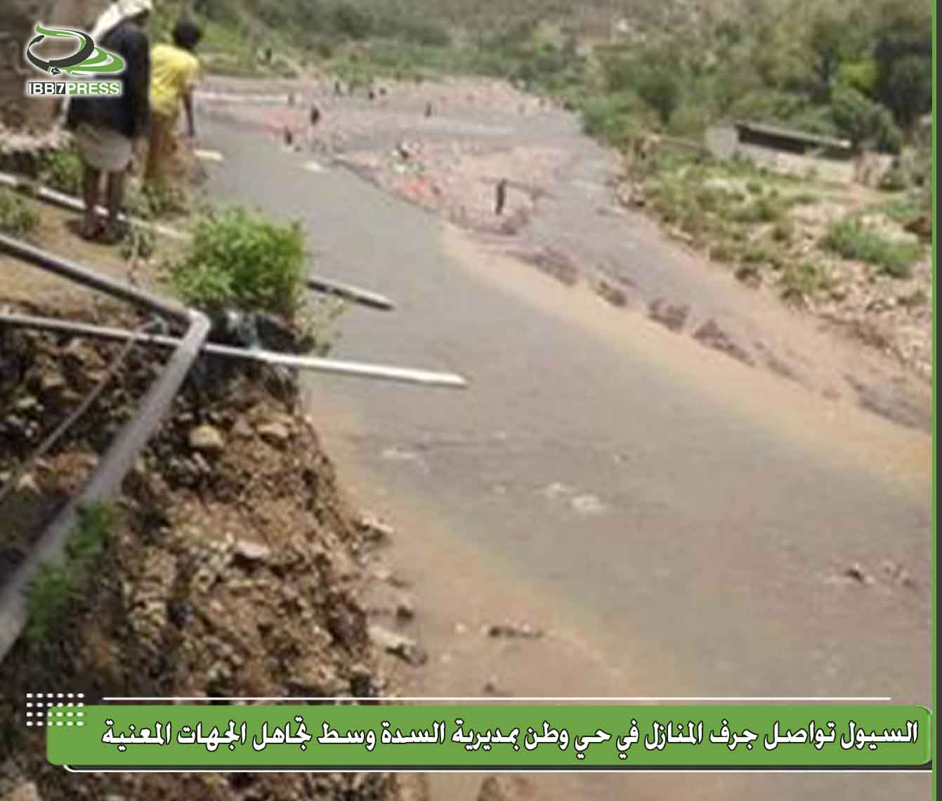 أطلق سكان حي وطن بمديرية السدة مناشدات واسعة لإنقاذهم من سيول الأمطار التي تهدد العديد من منازلهم المجاورة لمجرى وادي بنا الشهير، خاصة تلك السيول القادمة من قاع الحقل وجبال بني الحارث وبني العثماني.