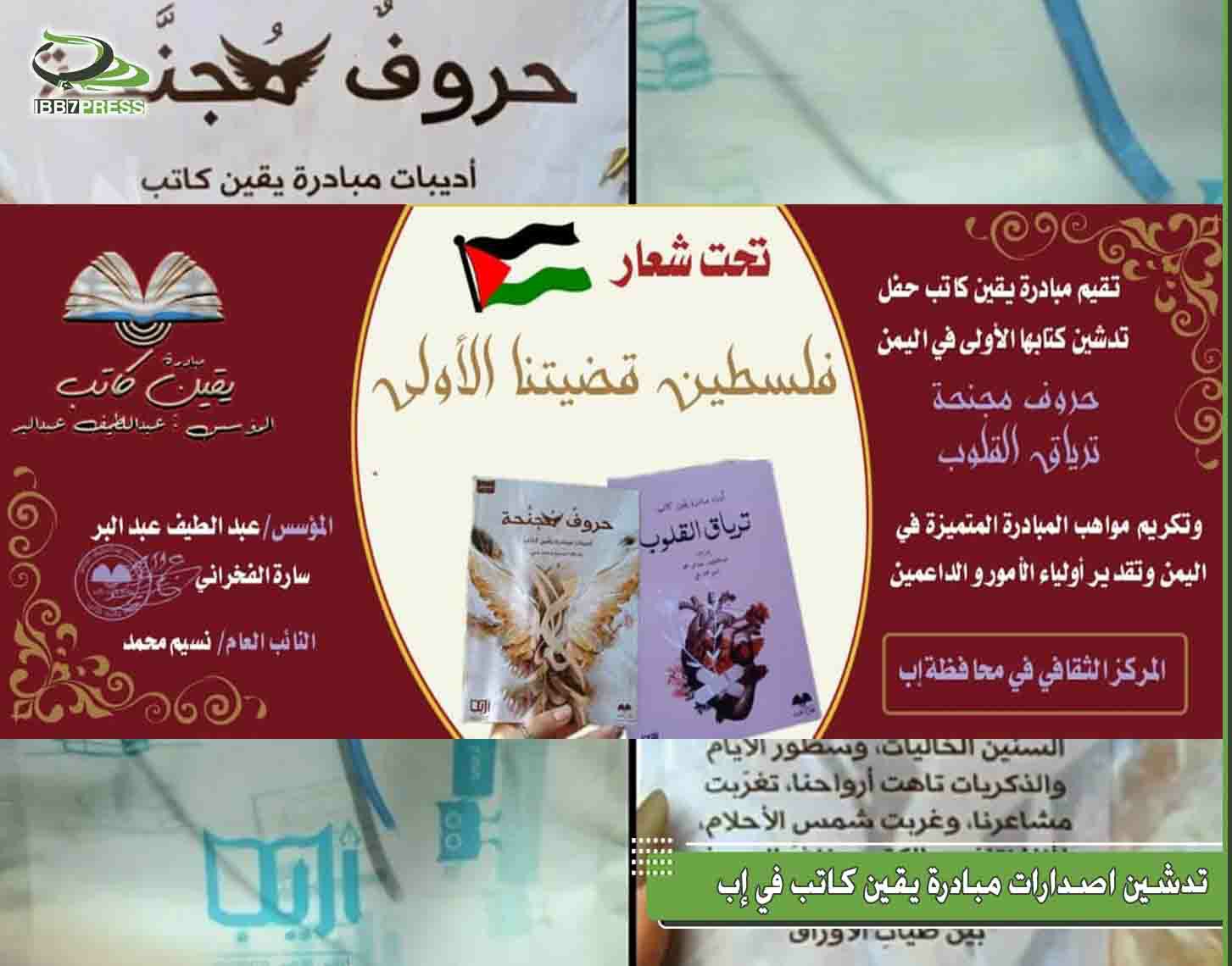 دُشن صباح اليوم في المركز الثقافي بمحافظة إب أولى إصدارات مبادرة يقين كاتب، تحت شعار فلسطين قضيتنا الأولى.