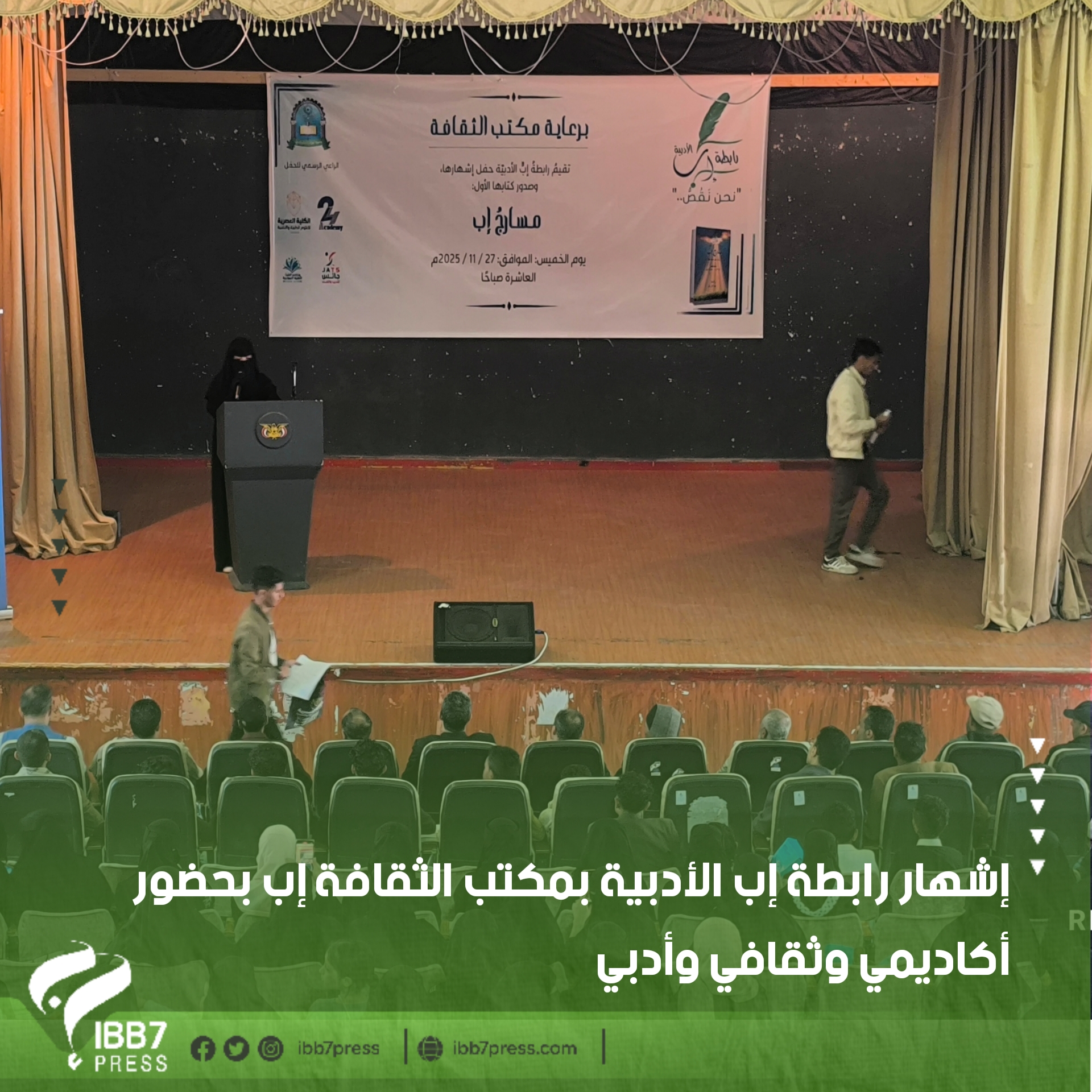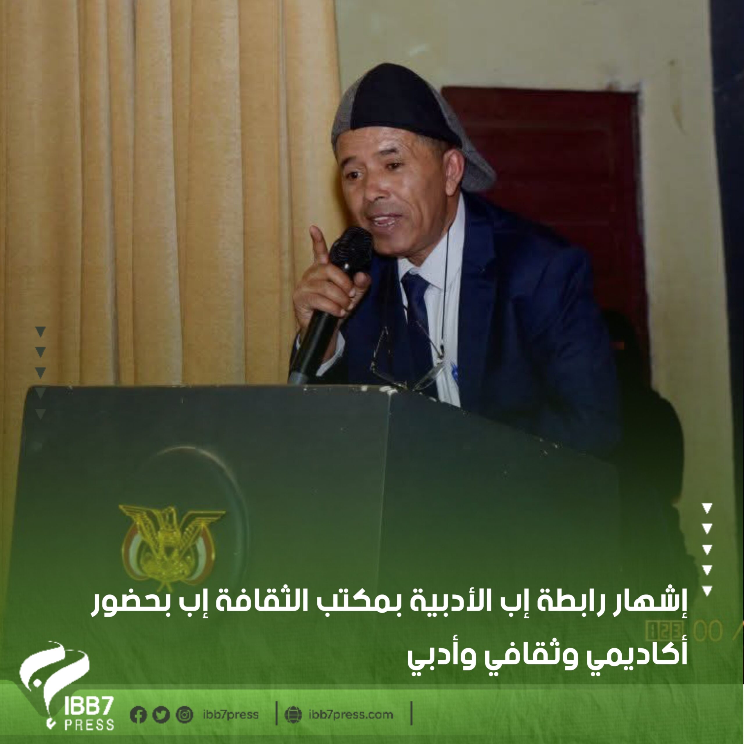 أقام مكتب الثقافة بمحافظة إب ورابطة إب الأدبية اليوم حفلًا رسميًا لإشهار الرابطة، بحضور عدد من القيادات الثقافية والأكاديمية والأدباء والمهتمين بالشأن الأدبي بالمحافظة.